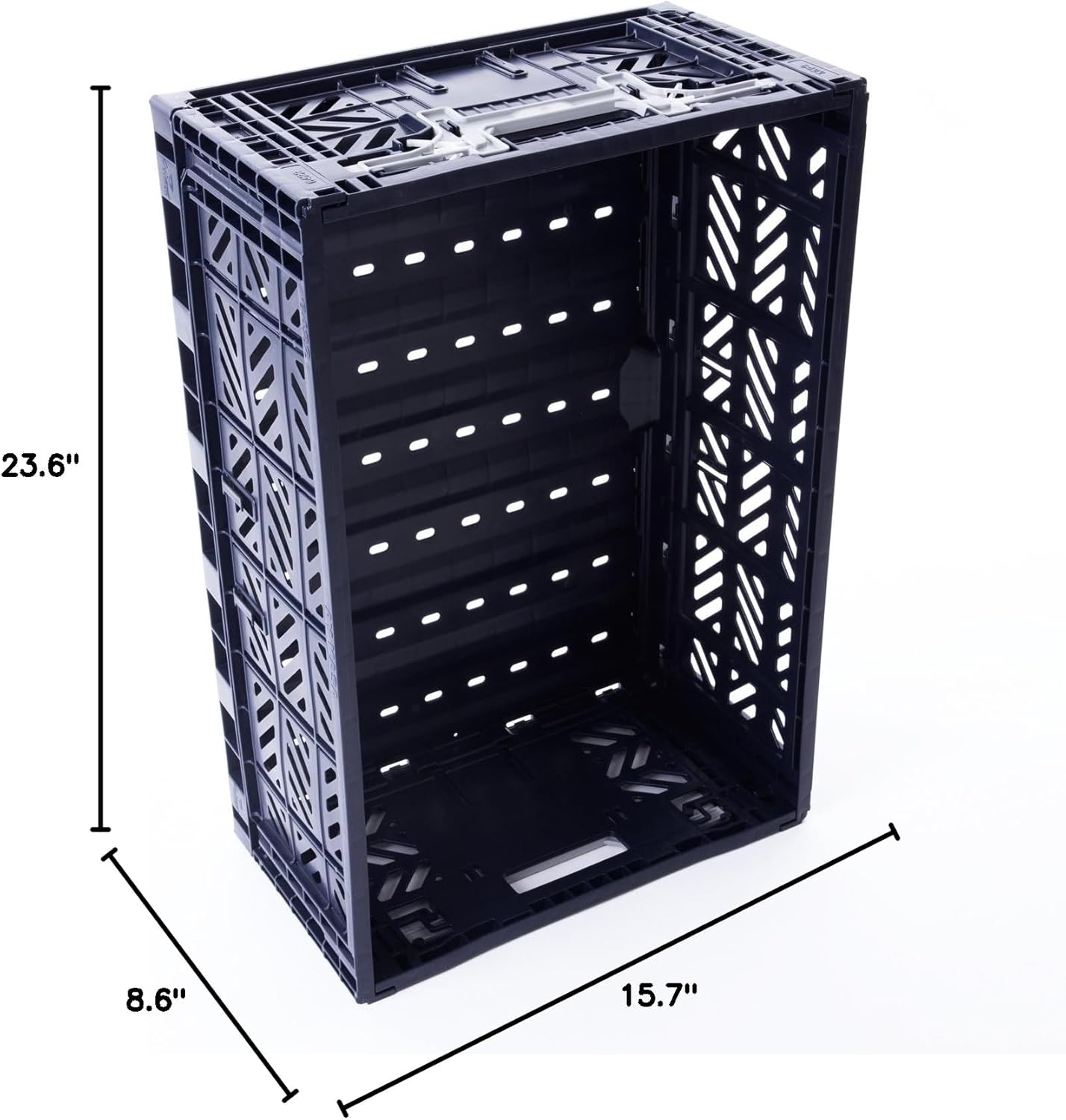 Easy Organize ,Save Big in space , Durable , Easy to use COMFORT LOCK – It is the newest lock system. It can fold and open with minimum effort and licensed Comfort Lock ensures practicality. Folding / Collapsible container can be used in different purposes , organizing Kids room , Office , Kitchen , Garage , All houseware organization also in wholesale like supermarkets and glassware markets for packing, transport and storage Provides maximum air circulation when you put fruits & vegetables inside the crate Easy to clean, Healthy for food and keep them fresh Interlocking nesting system provides stability for vertical stacking; When not in use, it collapses down to 1.4″ H for compact storage Exterior 23.6″ x 15.7″ x 8.6″,Interior 22.4″ x 14.5″ x 8.2″ it holds 44.2 liters by volume, with a maximum load capacity of 48.5 pounds Integrated Quality Systems with Quality, Food Safety, Workplace Safety and Environmental Management Systems, ISO 9001-2008 / ISO 14001 / OHSAS 18001 / ISO 22000 and it produces its boxes in line with the FDA, BGA and all food standards. Maximum Endurance UpTo 1323 Lb