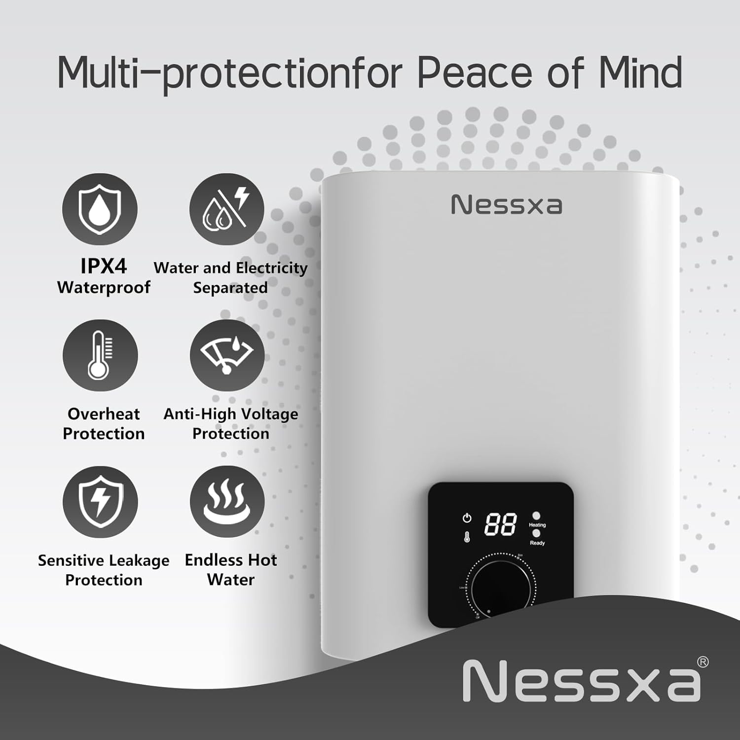 SAVING ENERGY & TEMPERATURE CONTROL – Our under sink water heater has a temperature adjustment range of 77 ℉ -176 ℉ (25 ℃ -80 ℃). You only need to rotate the knob on the electric water heater panel according to your needs. When the water temperature in the instant hot water heater is below 77 ℉/25 ℃, the mini tank water heater will be in standby mode, maximizing energy and power savings. The adjustable thermostat allows you to set your desired water temperature, providing maximum comfort and convenience.