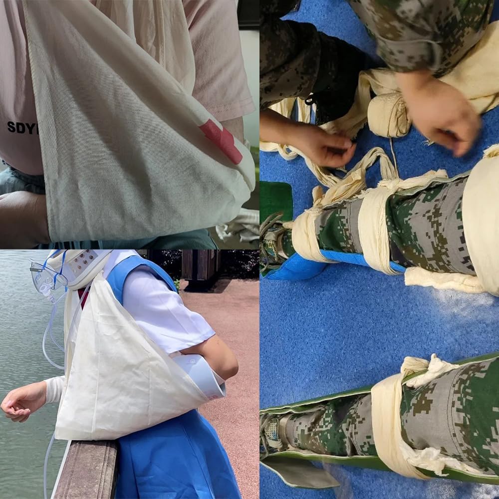 2 Pack First Aid Triangular Bandage with Red Cross Sign Fabric First Aid Triangle Splint Bandages for Emergency Wound Dress Survival Kit Sprain Arm Broken Bones Support EMT Medical Training