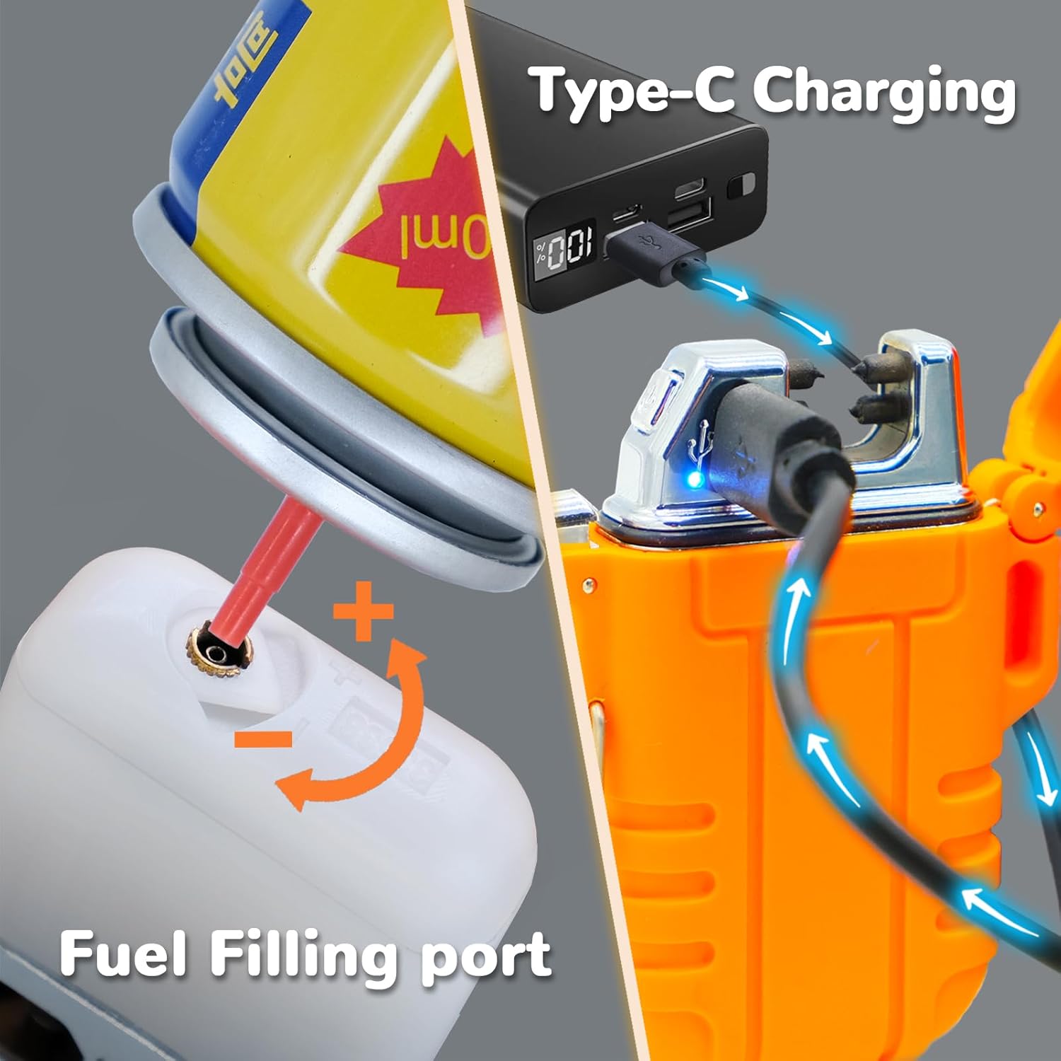 WHAT YOU CAN GET – Package included: 1 usb ARC lighter + 2 butane torch lighters, 1 usb cable and 3 Lanyards. The usb chargeable lighter is a perfect outdoor adventure tool. The refillable butane torch lighter is a better choice when you need to burn thicker branches or wood. Come with a lanyard for better carrying during camping, hiking, traveling