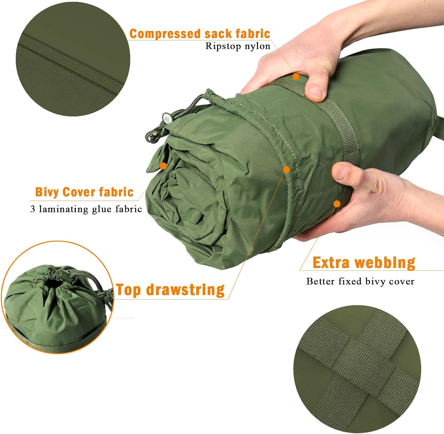 Military Grade: Based on U.S Army Modular Sleeping bags system, isolate BIVY cover Sack envelopes your sleeping bag and pad within a waterproof-breathable shell.