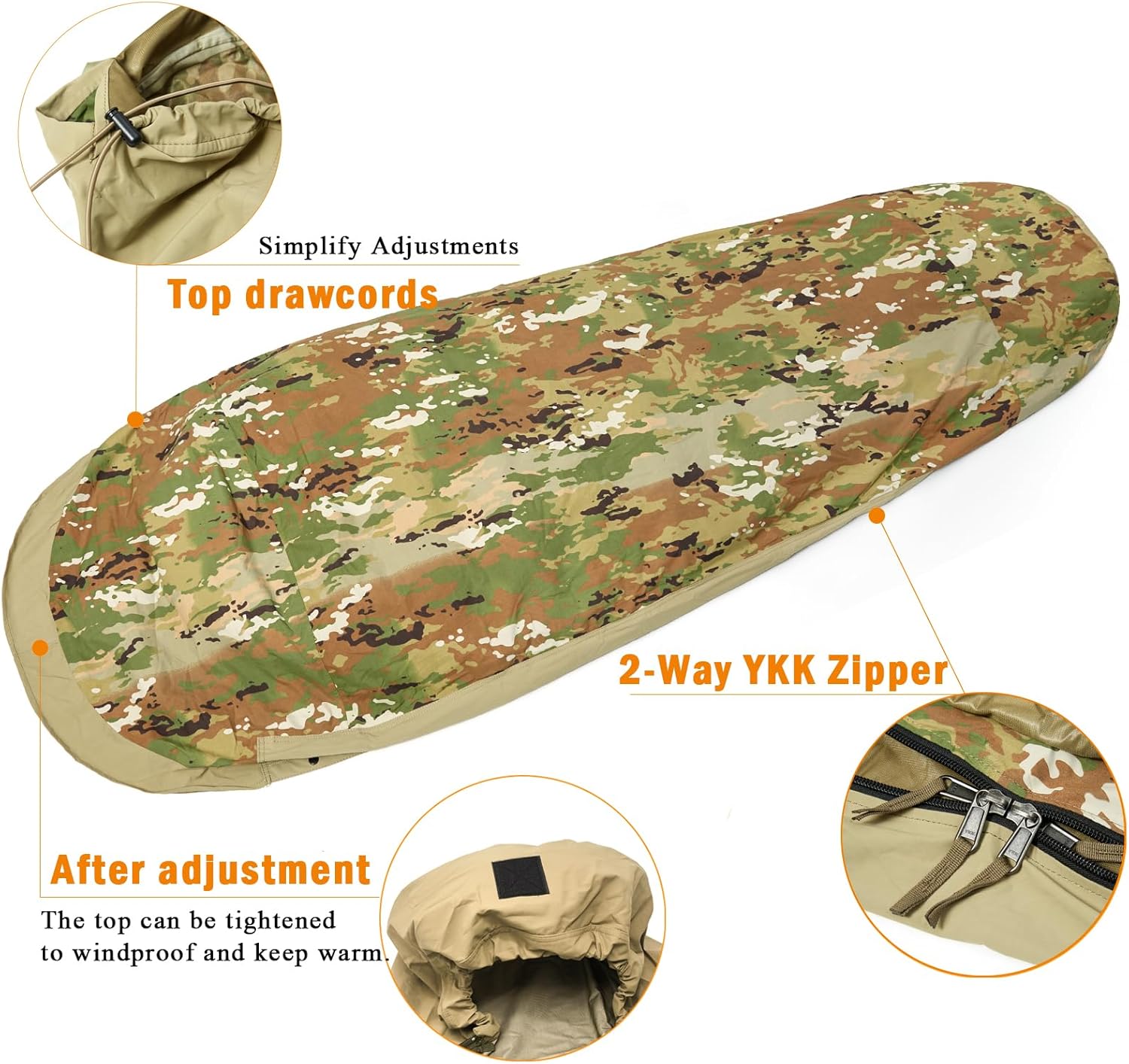 Military Grade: Based on U.S Army Modular Sleeping bags system, isolate BIVY cover Sack envelopes your sleeping bag and pad within a waterproof-breathable shell.