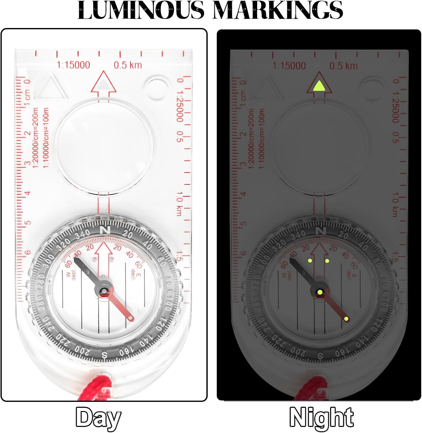 The direction arrow of the compass travel is marked with luminous light, so you can easily see the direction at night and in the dark. The directional compass scale is precise and clear. Small and light, easy to store and carry.
