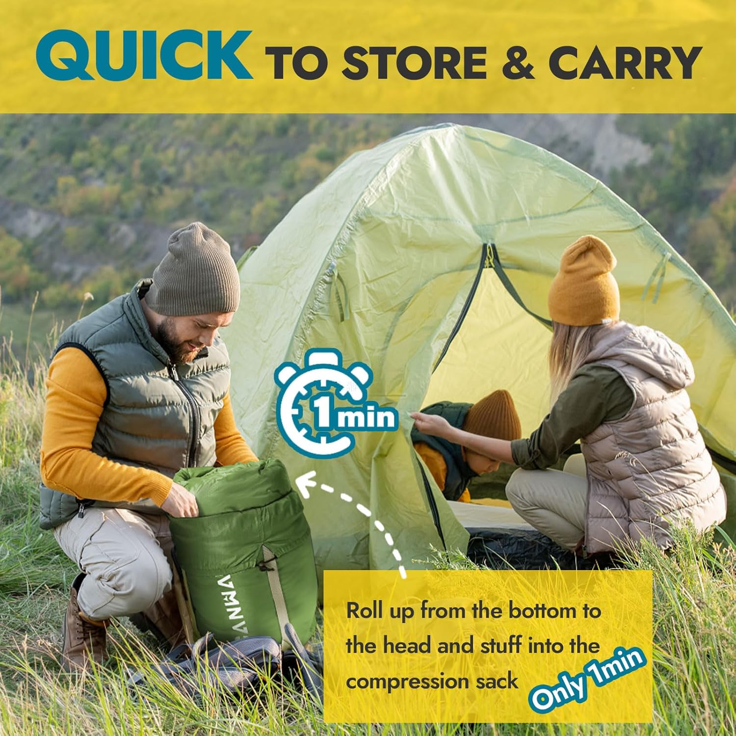 ♥EASY TO CLEAN AND CARRY – A free compression bag with straps is included in the package that lightweight and convenient to store and carry, the compression size can be 11*13.78″. Moreover, our camping sleeping bags are extremely easy to clean as they are safer for machine wash too.