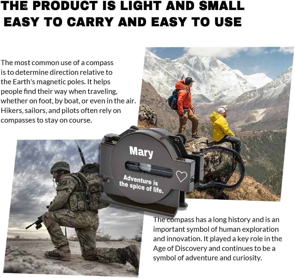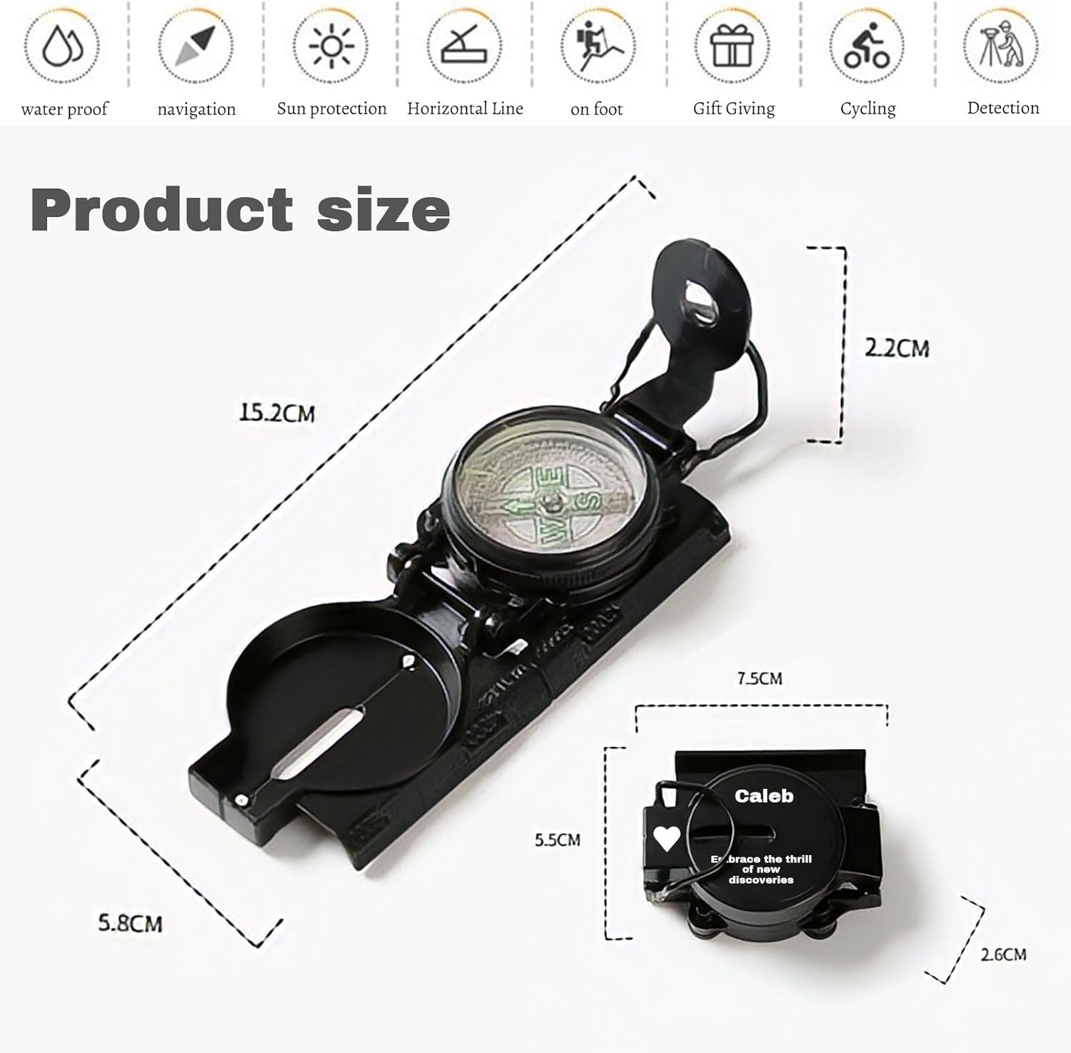 Custom Brass Compass: This customizable compass strap will add more personal touches to your hiking trip. Click “Customize Now” to upload the text you want to customize, whether it is your name, initials or your favorite design, we will help you realize it. It is an ideal land navigation device for hikers, campers, scouts and survivalists, meeting the needs of different outdoor enthusiasts.