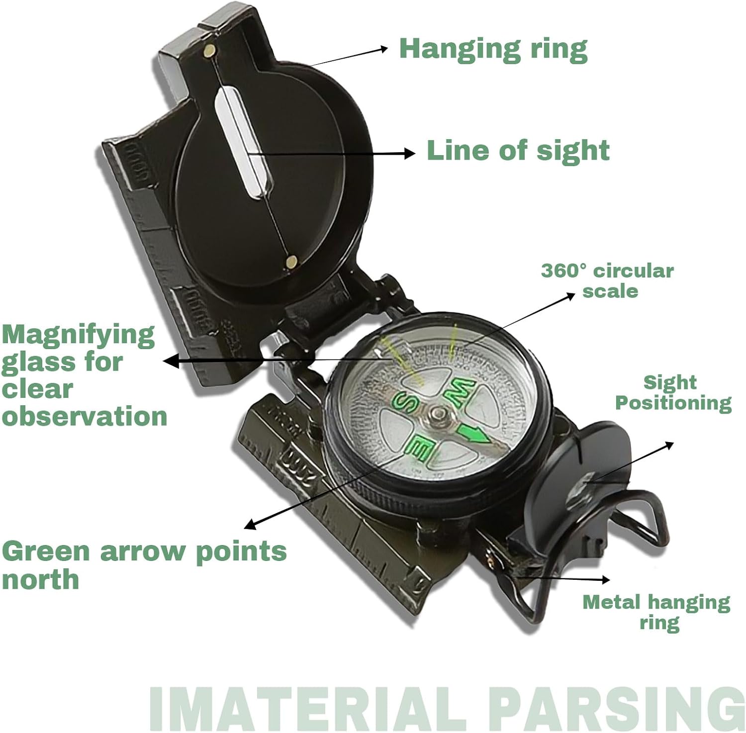 Professional compass: The hiking compass is designed for harsh survival conditions such as hiking, leading you in the right direction. It has a sturdy internal structure and is encapsulated with military-grade materials. It is waterproof and shockproof. When users navigate according to the map, it can still operate stably, accurately guide the navigation direction, and escort the journey even in extremely harsh hiking conditions.