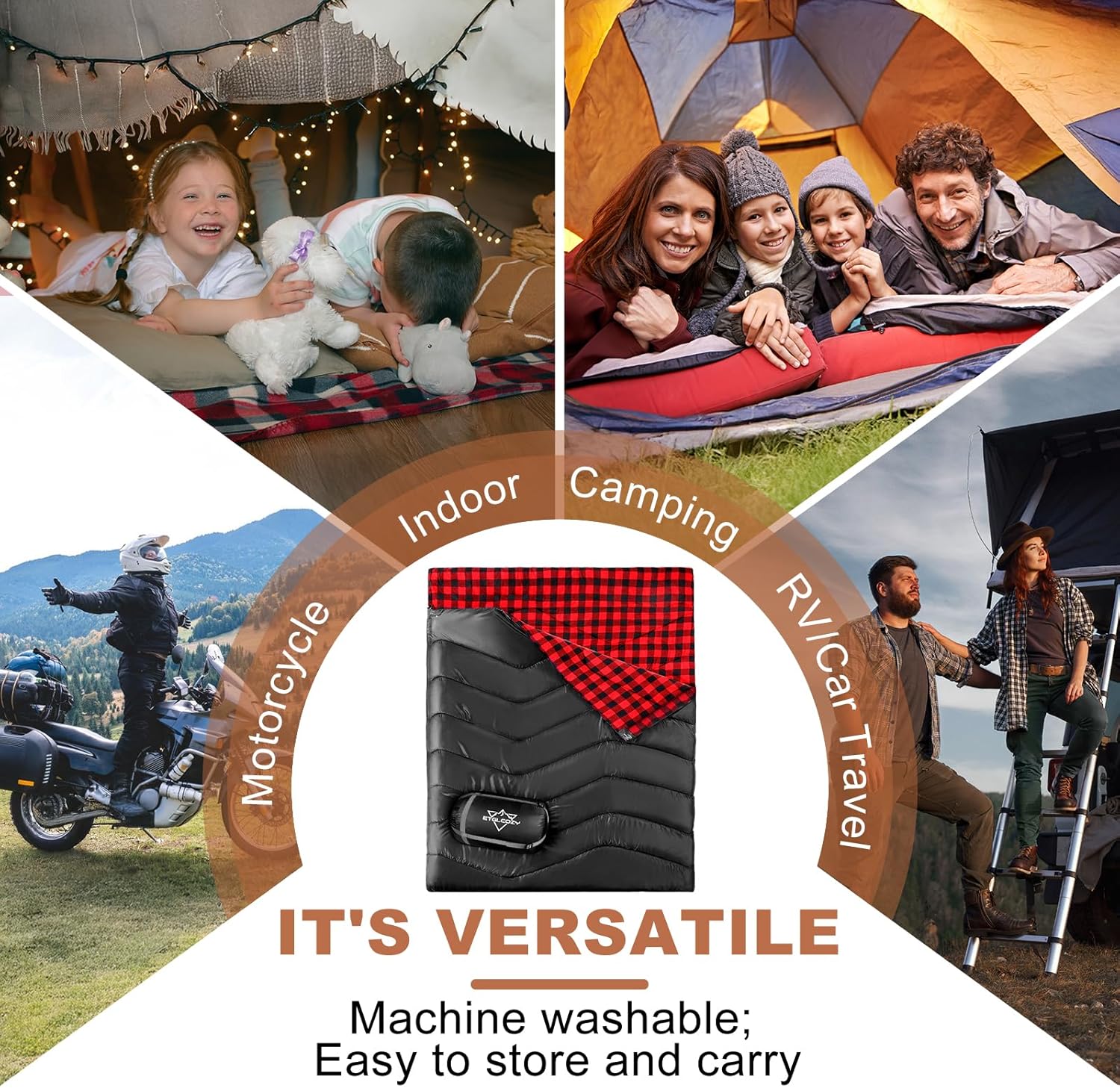 LARGE DOUBLE SLEEPING BAGS FOR ADULTS AND KIDS! FAMILY CAMPING FAVORITE! This Queen Size Sleeping Bag with a width of 63” is large enough for two people providing a roomy experience for couples and even families with small children. Or as 2 individual sleeping bags, or two queen sized blankets. Perfect for hiking, camping, traveling, Essential for Car Camping!