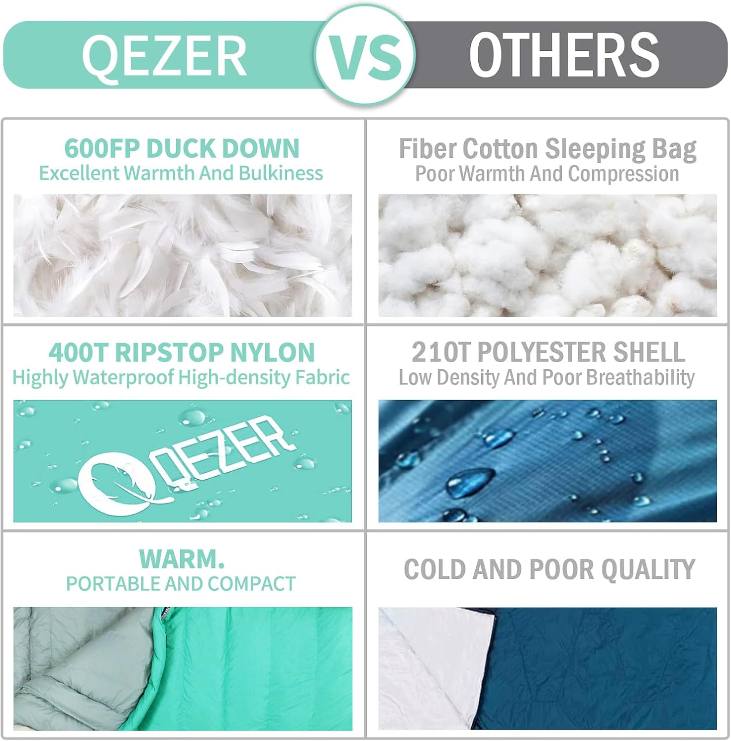 【 𝐒𝐀𝐓𝐈𝐒𝐅𝐀𝐂𝐓𝐈𝐎𝐍 𝐆𝐔𝐀𝐑𝐀𝐍𝐓𝐄𝐄 】QEZER always provides our customers with the best sleeping bag products and services with stylish design, premium down and more perfect outdoor functions. If you have any product questions, please contact us via Amazon and provide your order number, we will respond sincerely and do our best to keep you satisfied.