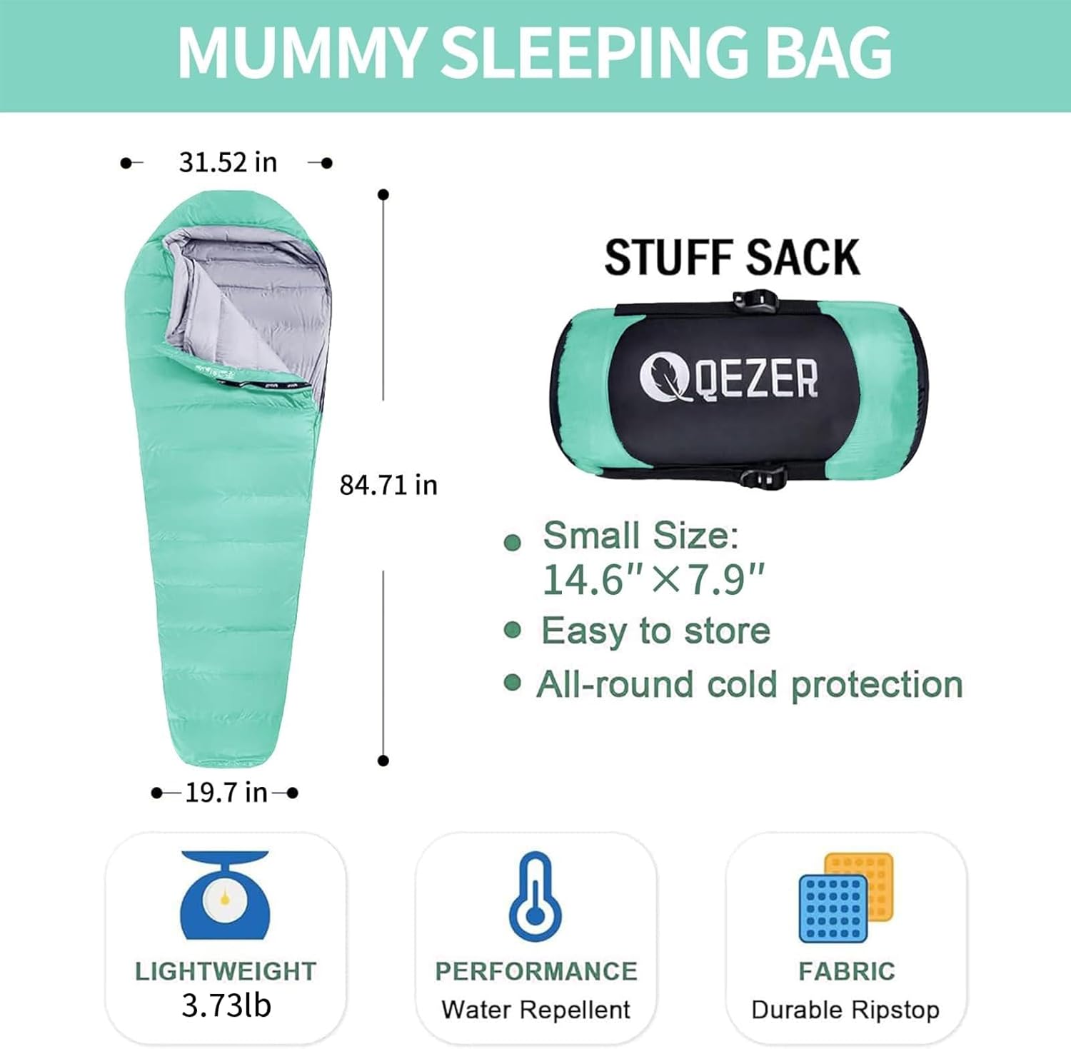 【 𝐒𝐀𝐓𝐈𝐒𝐅𝐀𝐂𝐓𝐈𝐎𝐍 𝐆𝐔𝐀𝐑𝐀𝐍𝐓𝐄𝐄 】QEZER always provides our customers with the best sleeping bag products and services with stylish design, premium down and more perfect outdoor functions. If you have any product questions, please contact us via Amazon and provide your order number, we will respond sincerely and do our best to keep you satisfied.
