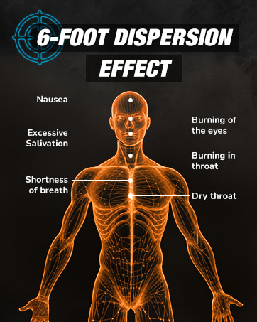 Powerful dispersion causes nausea, burning, and shortness of breath. Useful for creating safe distance instantly.