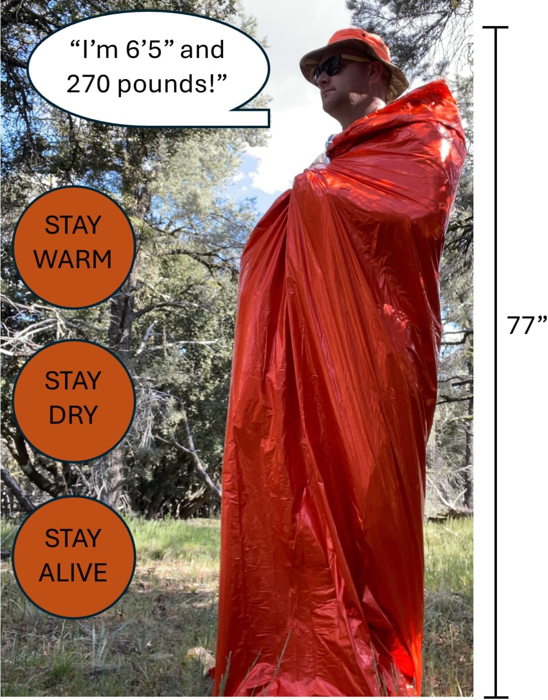Made from PE Mylar, this emergency bivvy/sleeping bag is a compact and light weight way to ensure you stay warm and dry through the night. Silver lined and water proof, this bivvy reflects up to 90% of body heat.