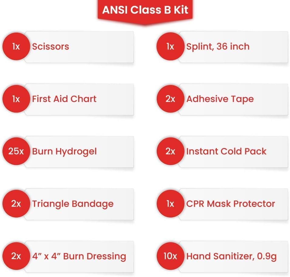 ANSI B COMPLIANT – Our first aid kit is compliant with the most recent ANSI regulations for class B first aid kit for a high-risk environment workplace with more than 40 employees.