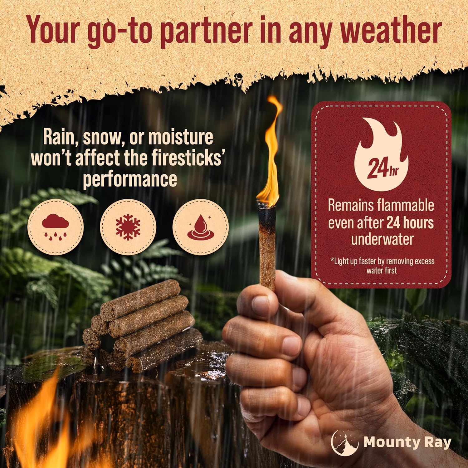 Waterproof and Weather-Resistant: Our fire starter remains flammable even after 24 hours underwater, making it ideal for any outdoor adventure, no matter the weather; perfect for any survival kit or emergency situation