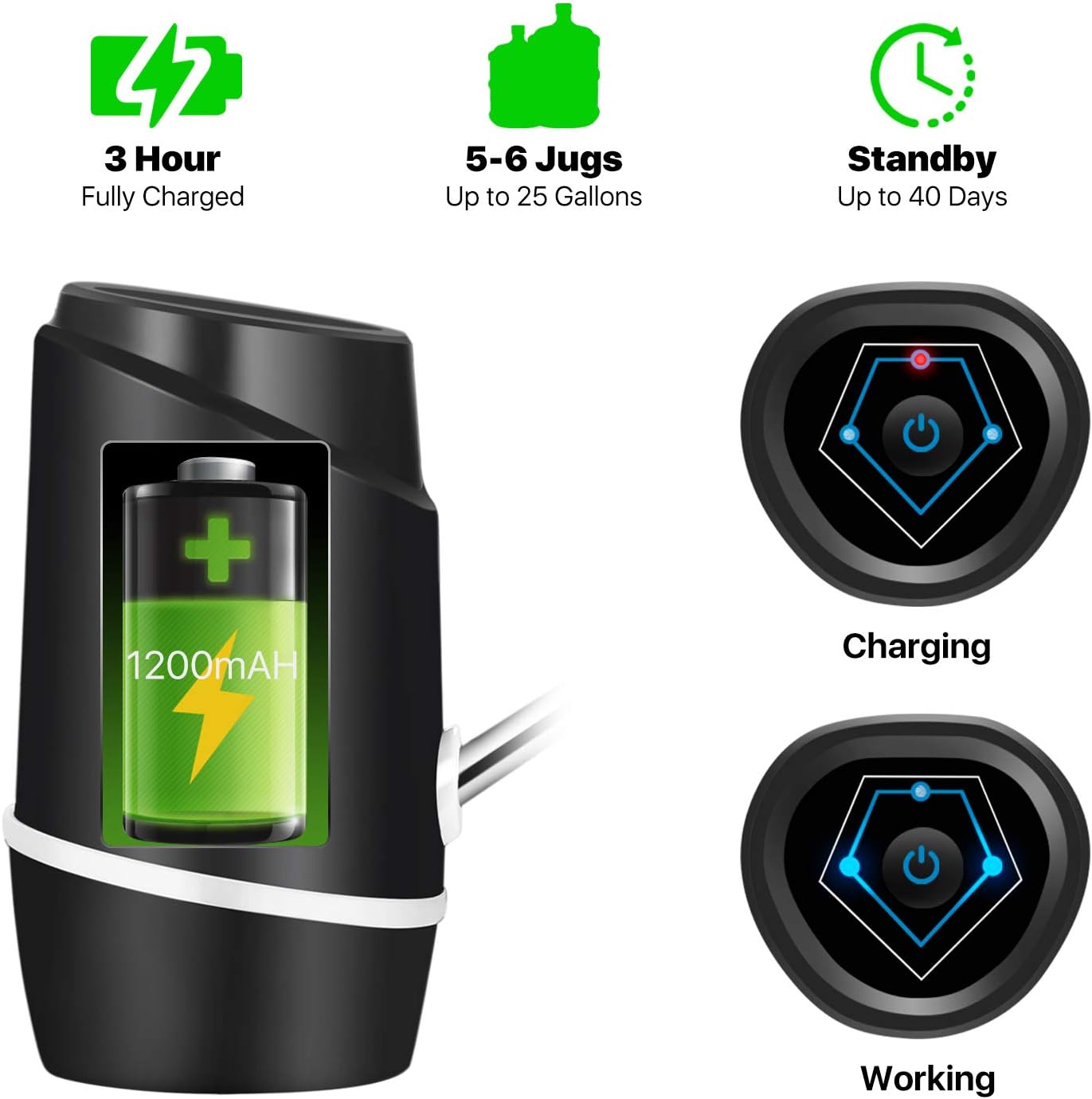 - 1 x Water Bottle Dispenser for 5 / 6 Gallon Jugs, Detachable Electric Cold Drink Beverage Pump w/ Portable Mini Battery Box, Top Loading Type for Desktop Countertop Home Kitchen Office, Black