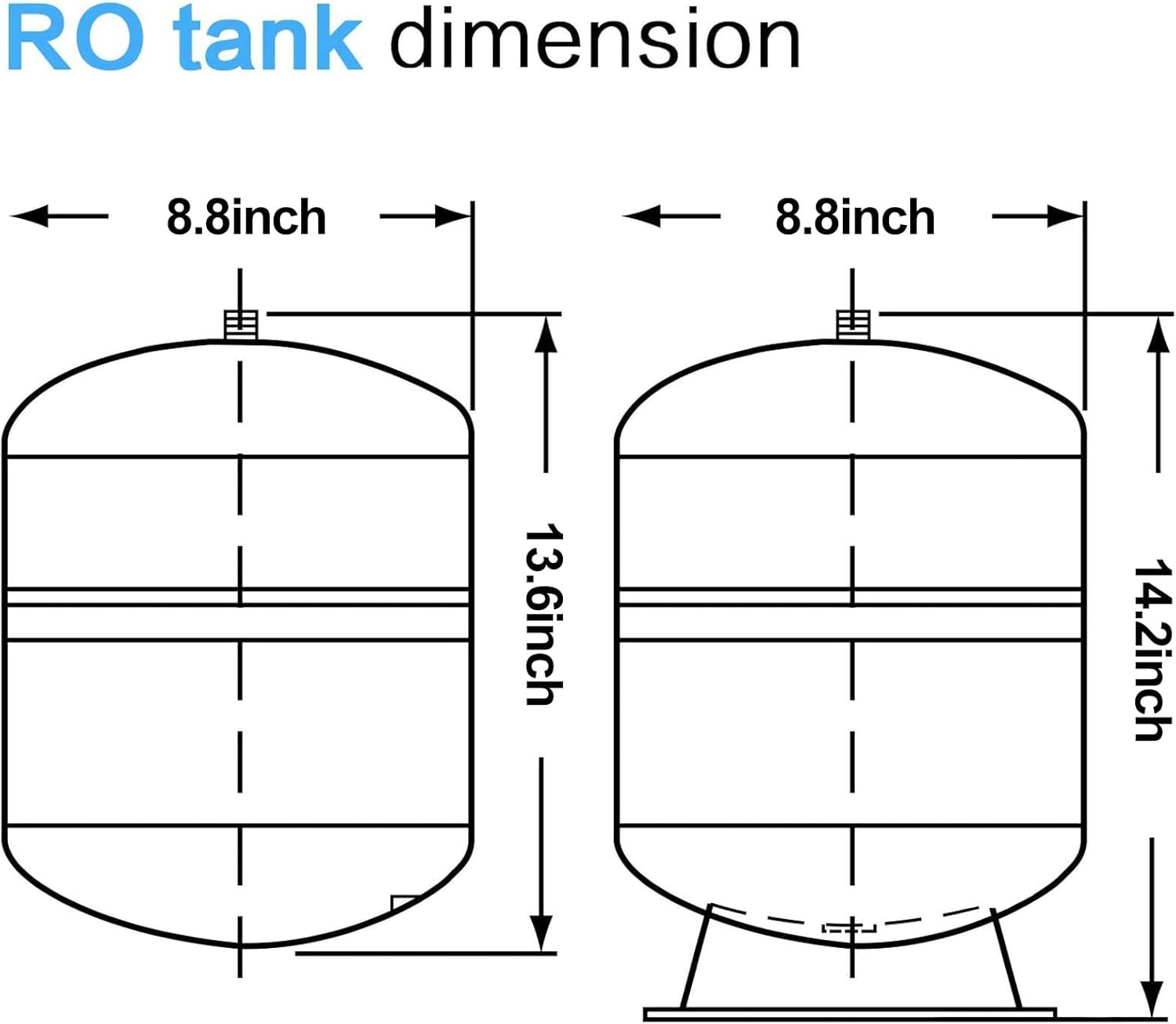SMART SIZE-2.8 Gallon reverse osmosis ro water storage tank,size at 9.2 x 9.2 x 13.8 inches.it could be installed at any cabinet