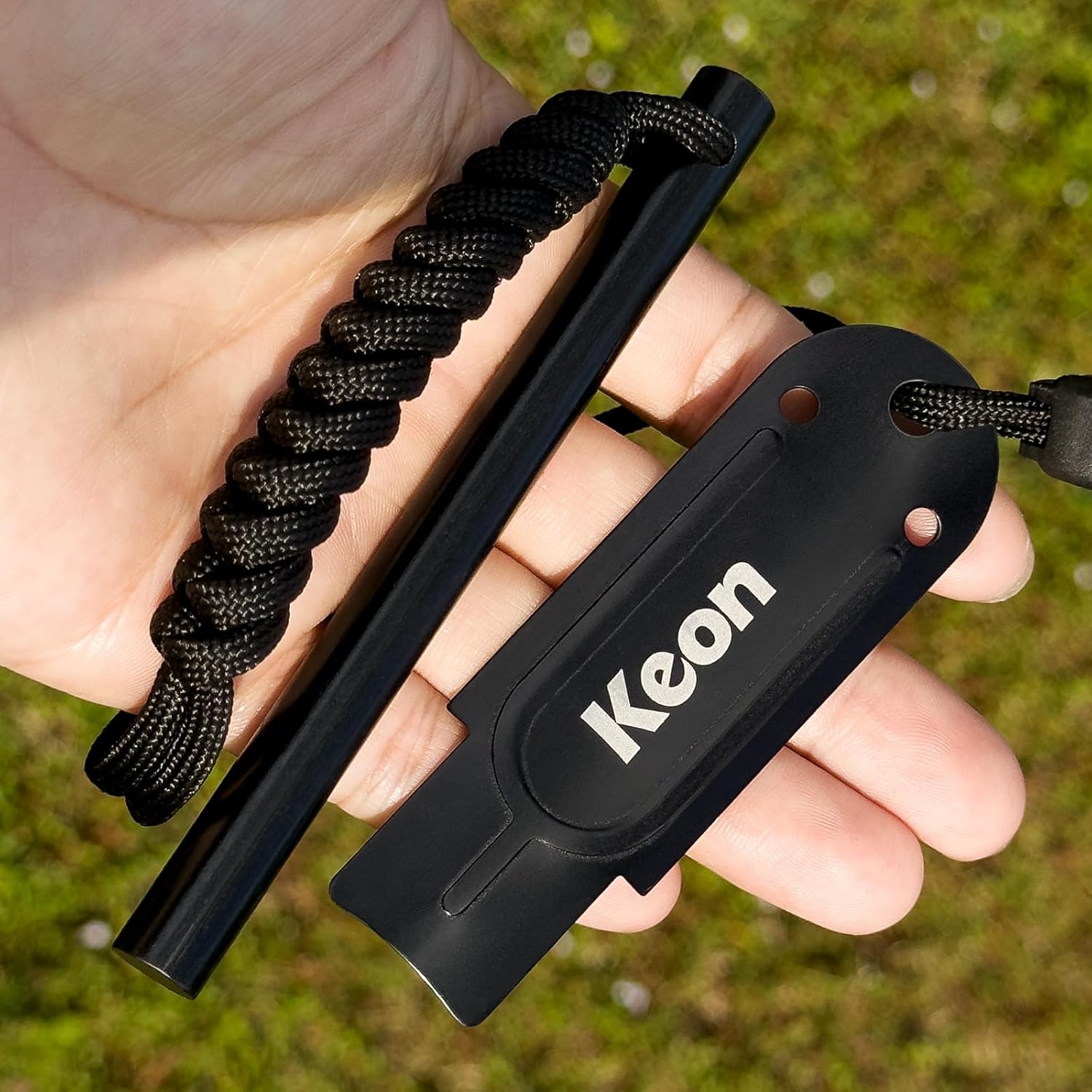 Keon Flint and Steel fire Starter kit, Ferro Rod fire Starter Survival Tool, 4.5″ x 3/8″ Camping fire Starter with Paracord Wrist Lanyard and Striker (Flint Lighter, Emergency fire Starters)