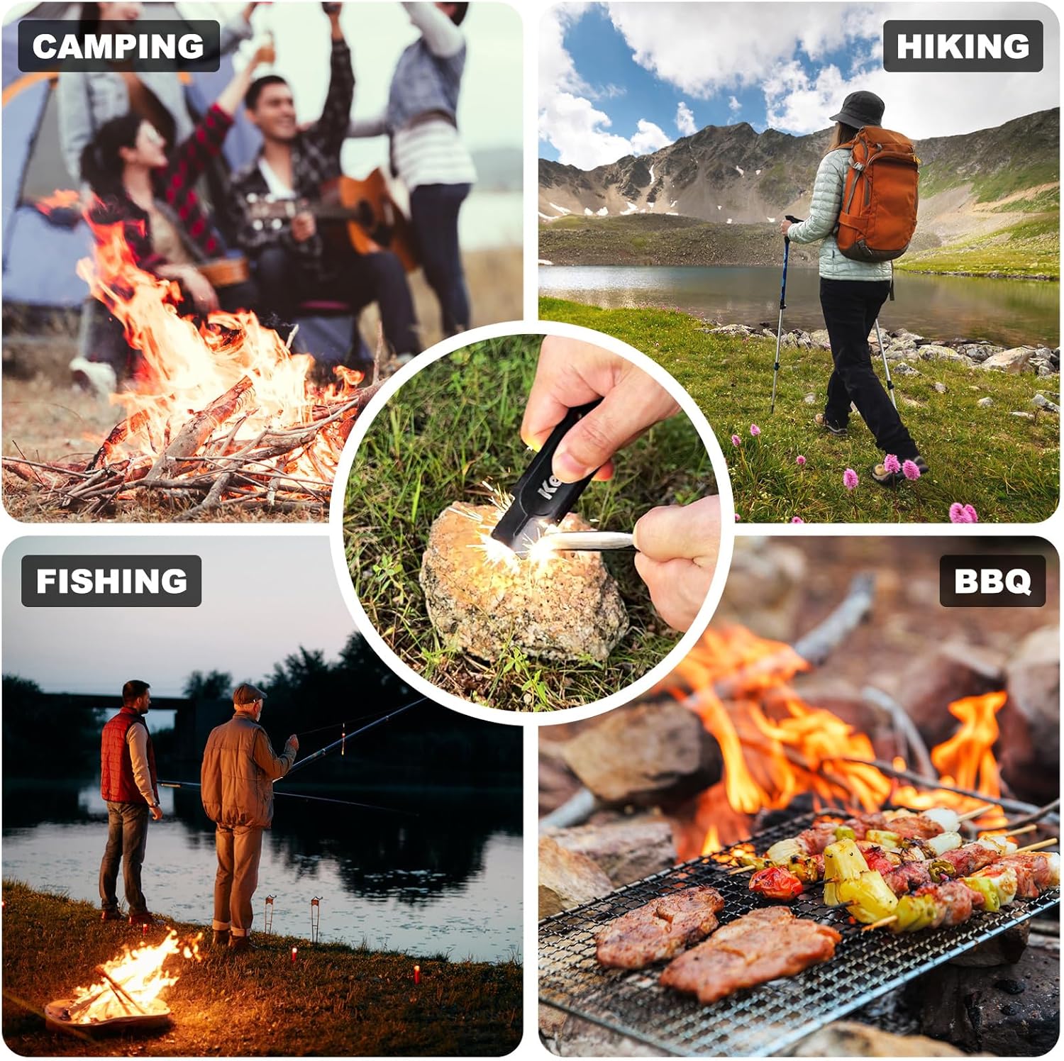 【Easy to use】The 4 ft braided paracord lanyard is securely attached to the ferro rod, providing a comfortable grip that won’t come off. It also includes a striker that’s integrated into the paracord, ensuring you are always prepared to start a fire. The striker is made from high-hardness steel with a unique arc design that maximizes the shower of hot sparks. It can be used with either your left or right hand for scraping.