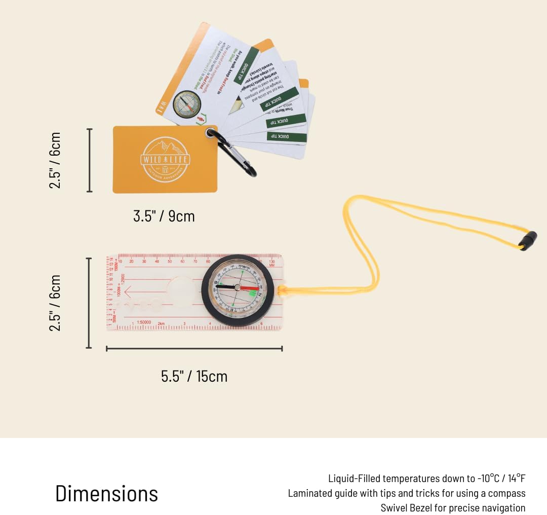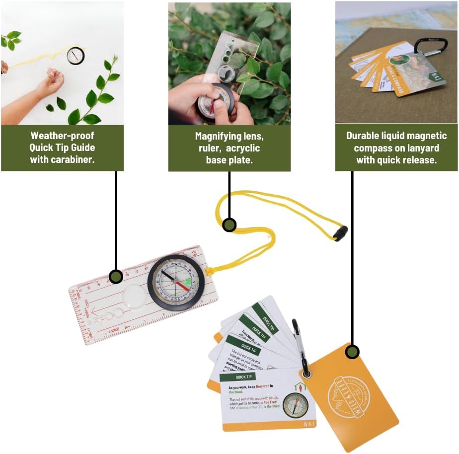 Laminated Guide Included: Learn essential compass techniques with the quick-tip guide, attached by a carabiner for easy access.