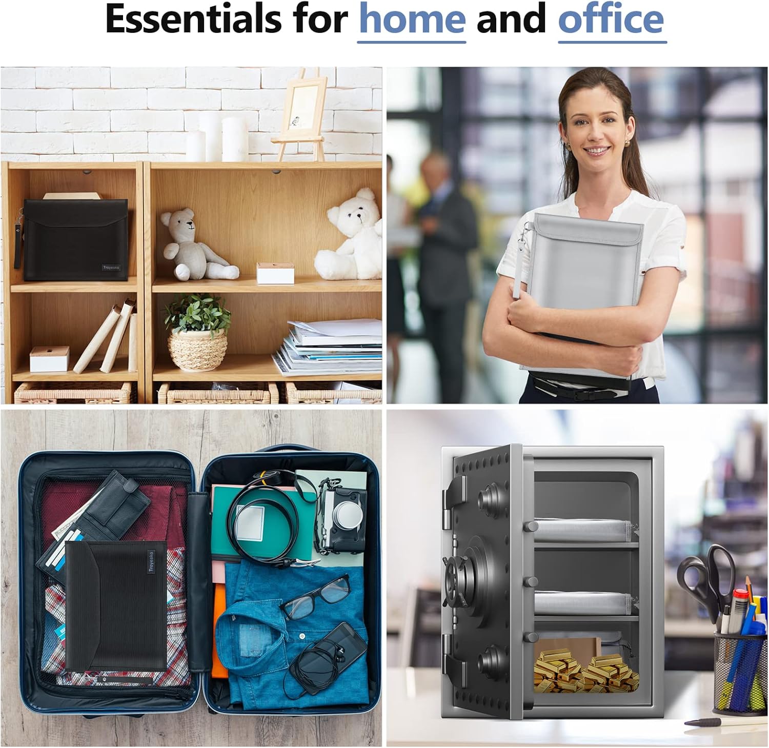 【2 Pack-15×11″+13×10″/Multipurpose】The size of this fireproof document box is 15×11″/13×10″, large capacity and foldable.It can be used to protect important items such as legal documents, BC, SSC, jewelry and child’s birth certificate. Like southern Florida, due to floods and hurricanes, most households here will always have document organizers. Fireproof bags can be used not only for home protection, but also to protect office documents and contracts, and travel to store passports and tickets