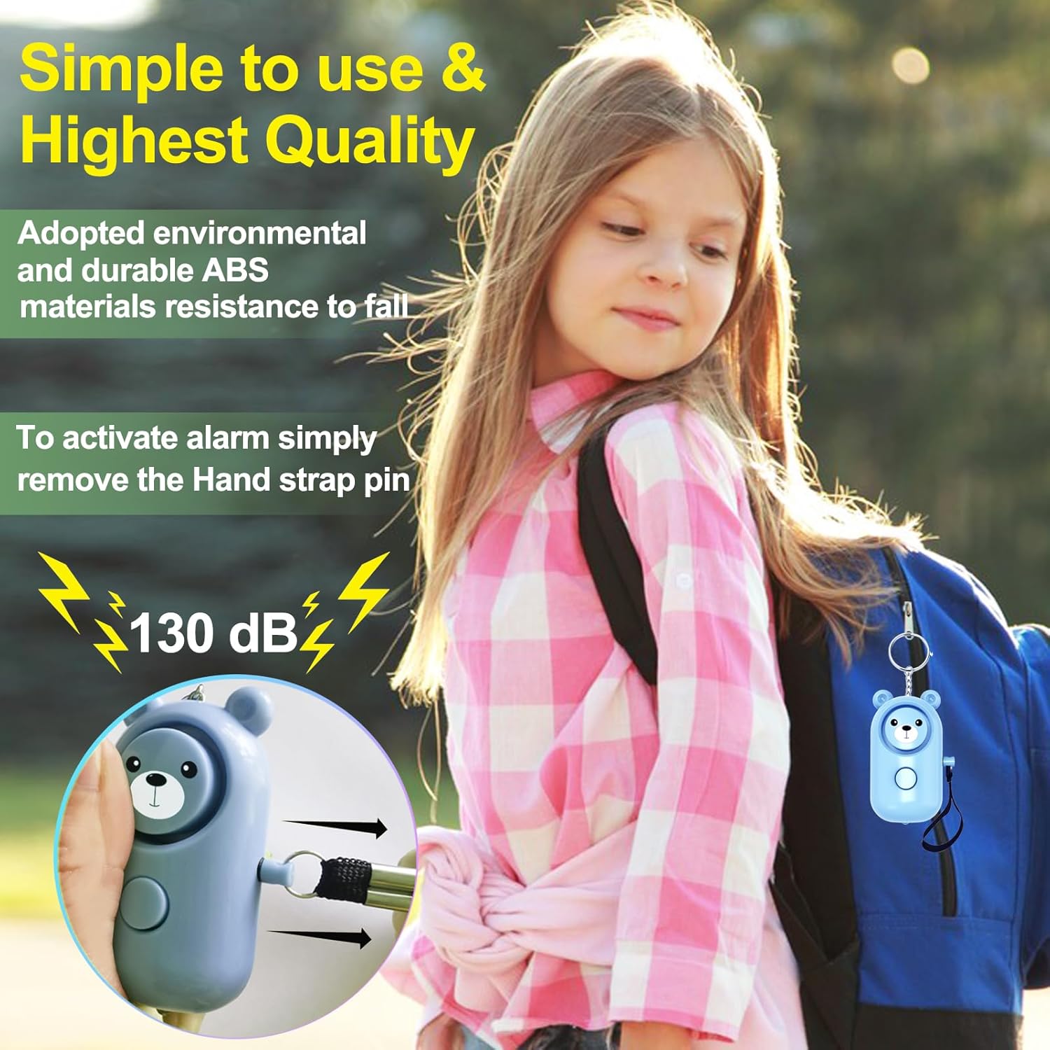 🌹 【 Durable & Easy to Use 】The personal alarm adopted environmental and durable ABS materials, resistance to fall. The alarm will be activated when you pulled the contact pin out, and siren will sound continuously for more than half hours until reinserted to device.