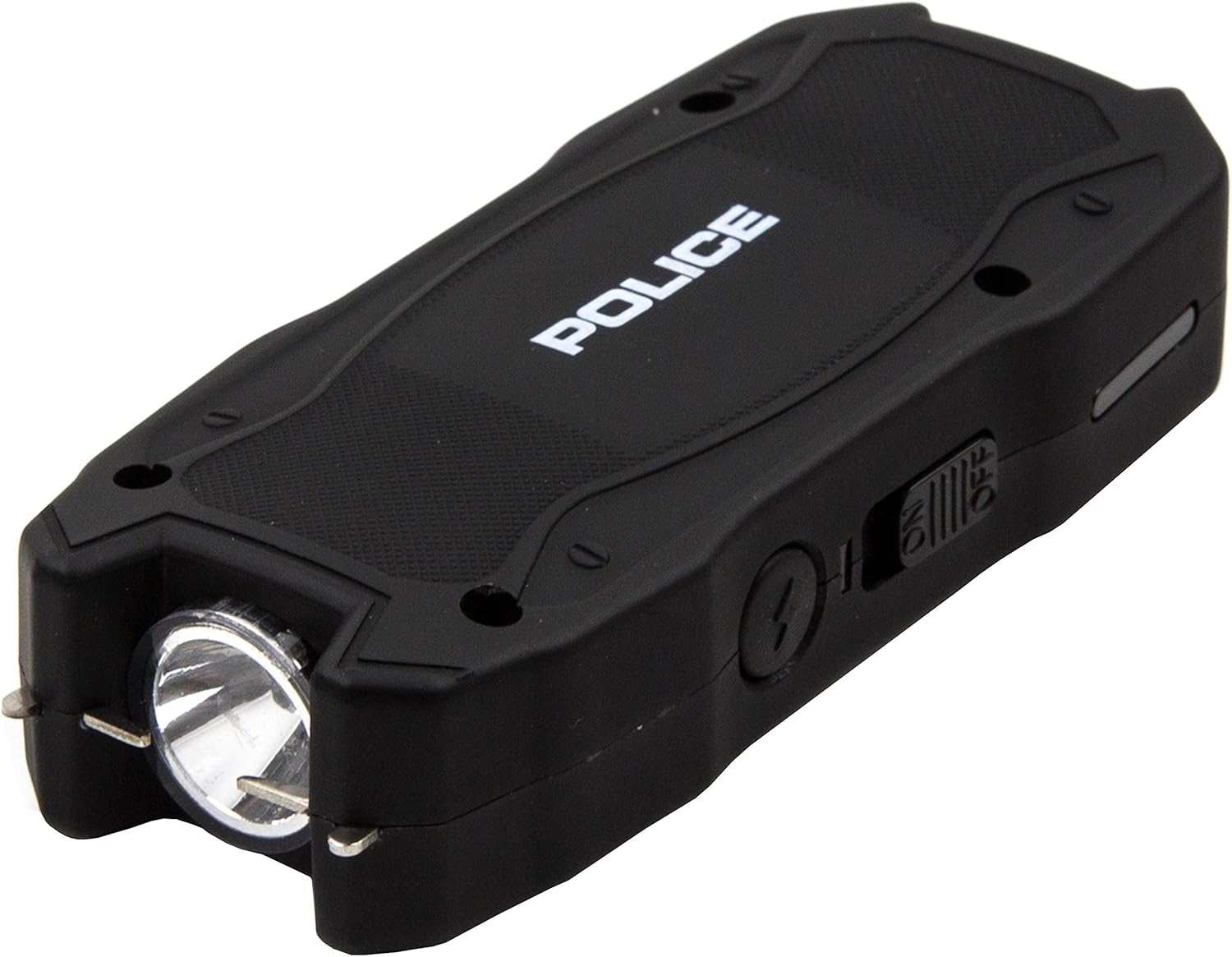 POLICE 1901 stun gun for self defense is engineered to meet the demands of police, military, and security professionals worldwide but also available to civilians. POLICE stun gun 1901 is made with ultra strong ABS plastic with non-slip rubber coating, and delivers strongest available power! It features bright LED flashlight and built-in rechargeable battery with battery life indicator. Our POLICE 1901 stun gun flashlight is mini size only 4” long x 2” wide and 1” thick so it conceals easily and easily slips into a pocket or purse. POLICE 1901 stun gun for women and men also comes with free holster case for easy everyday carrying. POLICE is a registered US trademark. POLICE – Your Safe!