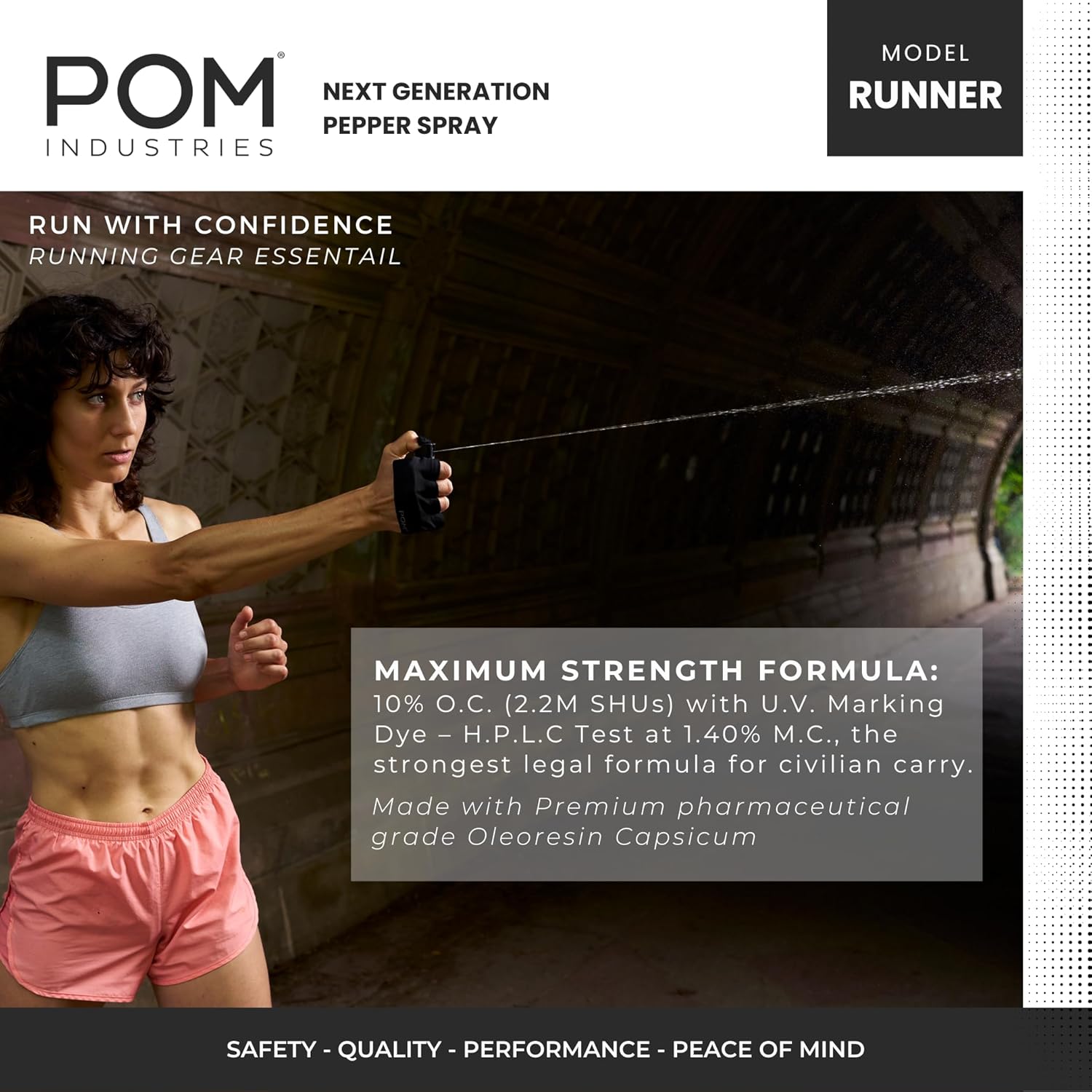 POM Pepper Spray Runner Model – Max Strength OC Spray – Athletic Stretch-Fit Glove, Breathable & Ambidextrous Design, Essential Runners Safety Gear, Flip Top, 35+ Bursts, 10-12 ft Range