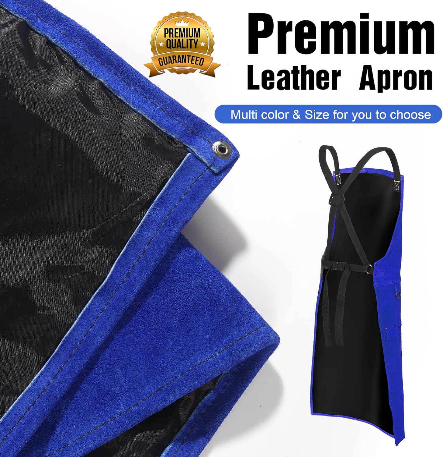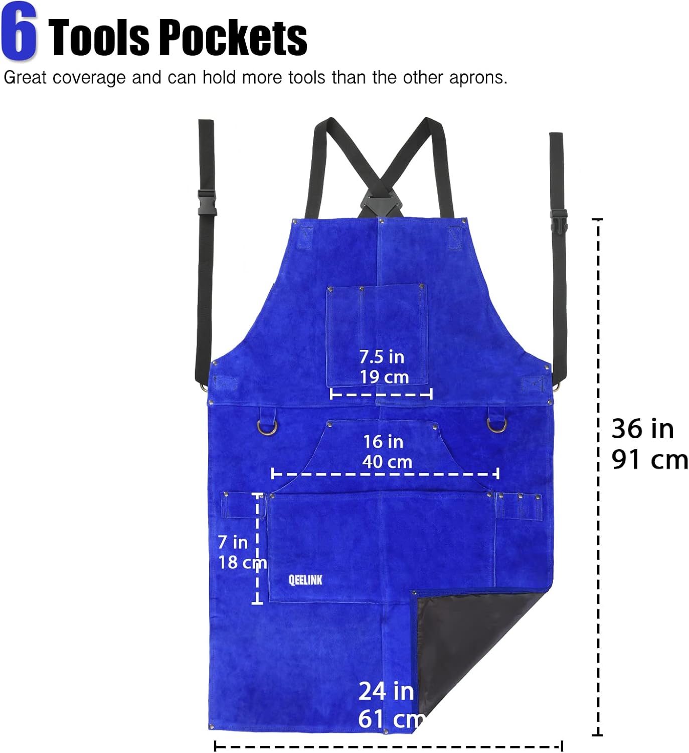 Customers find the apron to be heavy-duty with leather and stitching that holds up well, and appreciate its comfort with its soft split material and secure suspension system. The apron offers good value for money, with lots of handy pockets that can carry most tools, and provides effective protection against welding sparks. While the adjustable straps receive positive feedback, some customers note they could be longer.