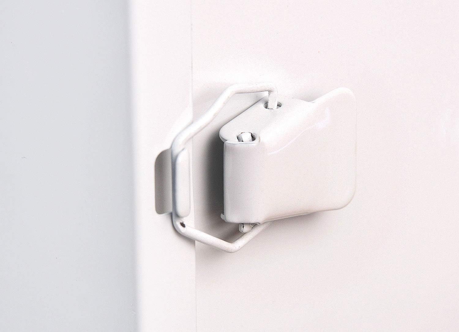 The cabinet is made of durable steel and can be wall mounted. Built in handle for easy transportation
