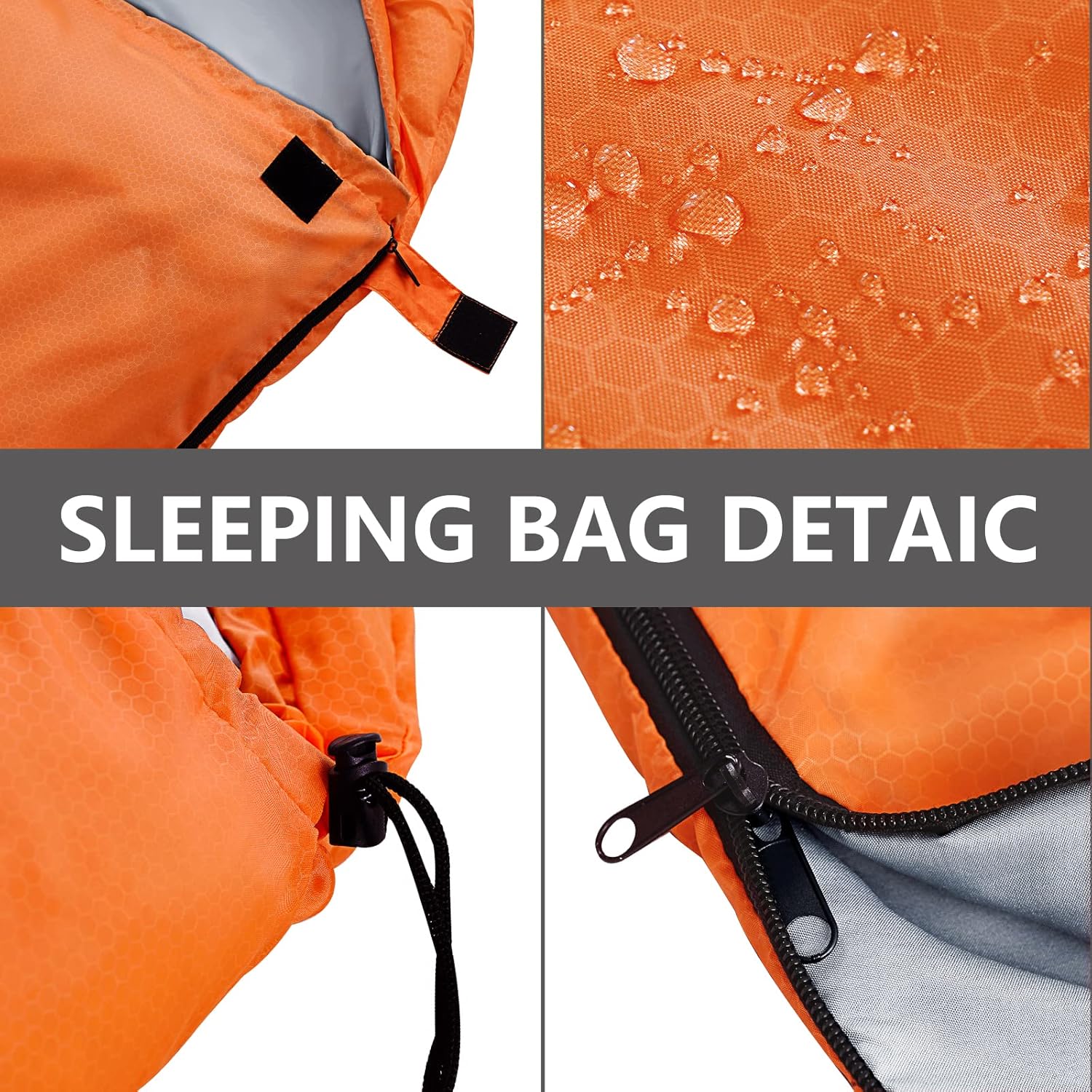 【 CLEAN 】: Our waterproof outer shell is easily wiped clean with a damp cloth. In case of heavy soilage the sleeping bag is designed for machine washing as well, ensuring easy maintenance and longevity.