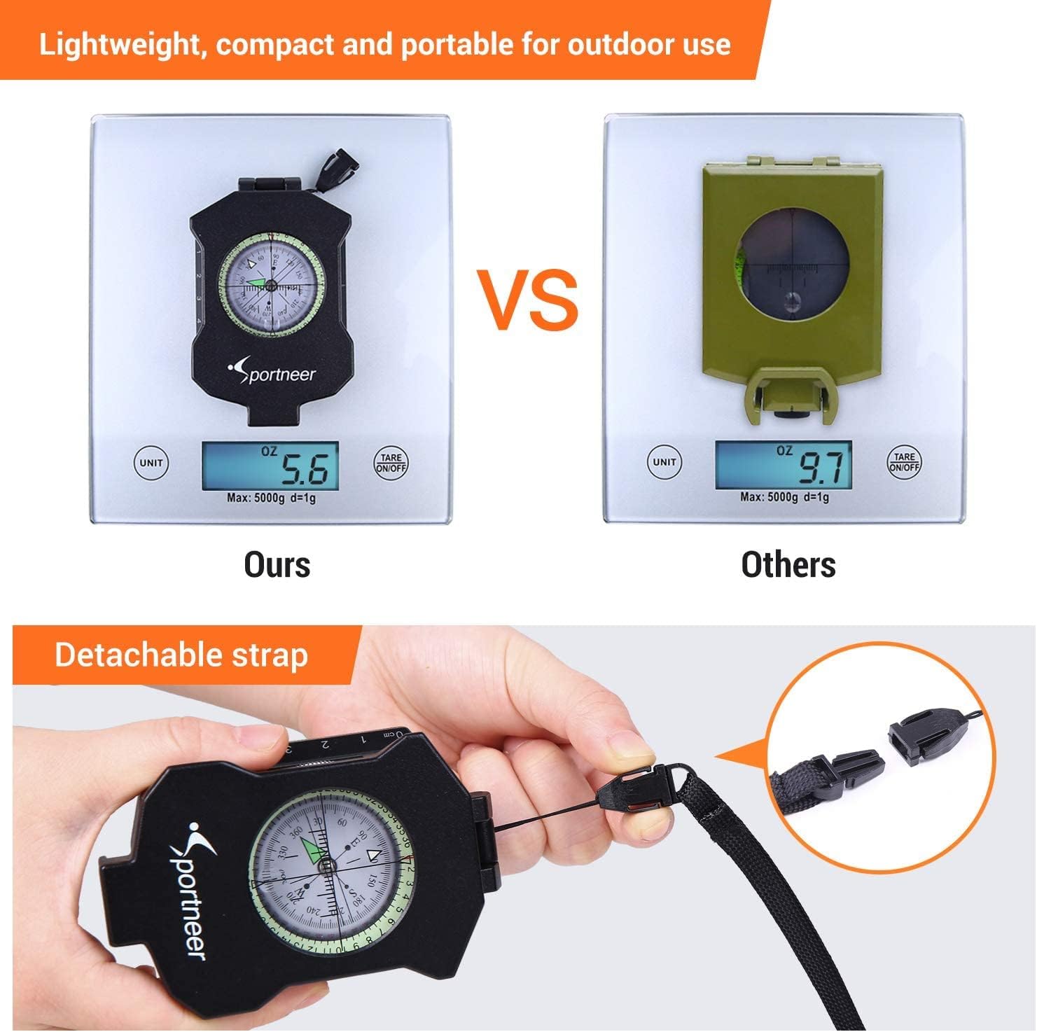 BUILT IN CLINOMETER: Sportneer hiking compass with clinometer, which can quickly measure the angle of slope, elevation when camping, climbing, skiing or hiking.