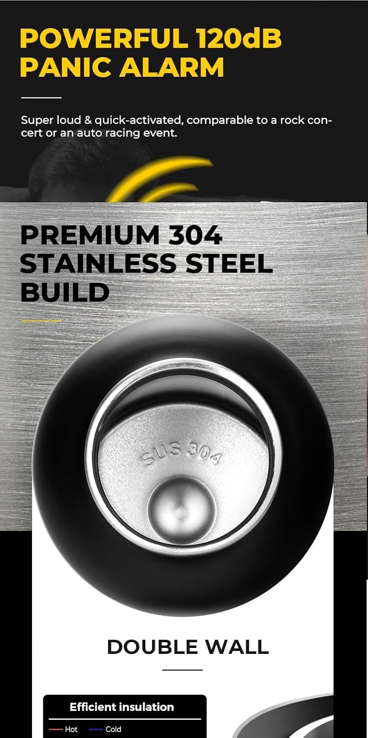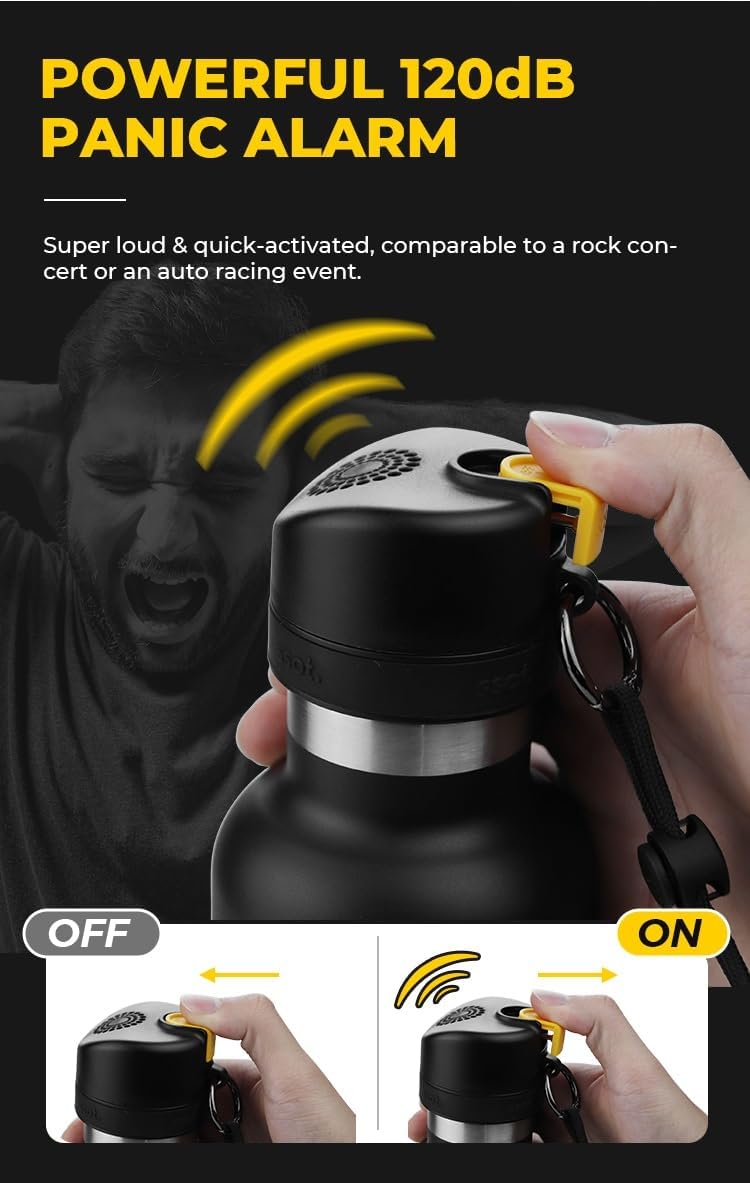 ssot BUZZTLE 120DB Alarm Insulated Stainless Steel Water Bottle with Fire Starter Compass Whistle Emergency Safety Alarm Survival Kit Bracelet (Black)