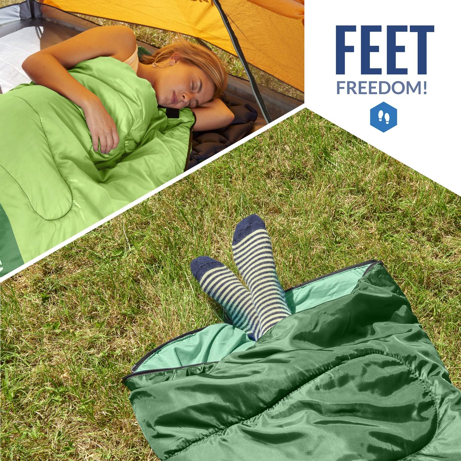 DURABLE, WATER-RESISTANT & EASY TO CLEAN – Made with high-grade polyester, this summer sleeping bag is tough enough for outdoor adventures while remaining soft on the skin. The water-resistant shell keeps you dry, and it’s machine washable for easy care.