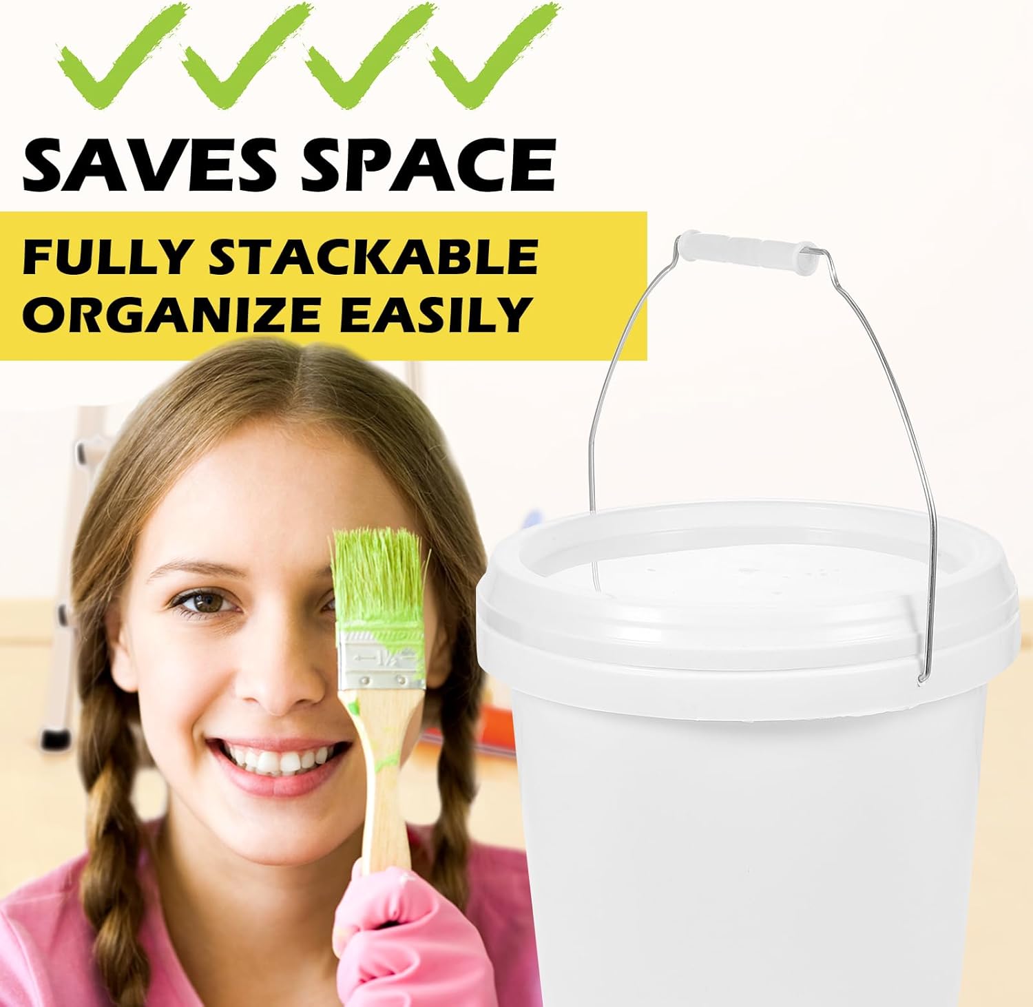 The paint can is made of ABS material, which can withstand the long-lasting use. for the daily storage and product packaging. It can be used to hold pigment, paint and other foods. Handle design, easy to use.